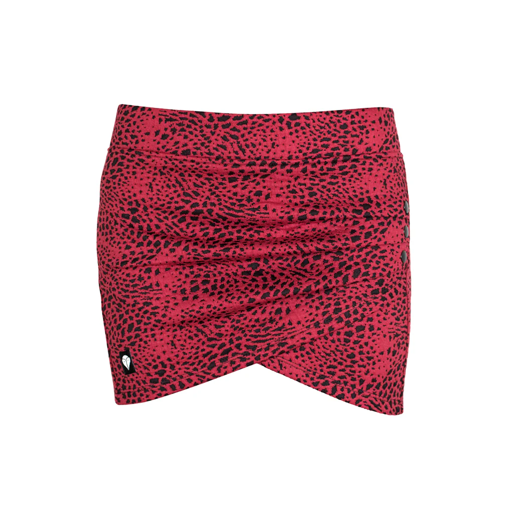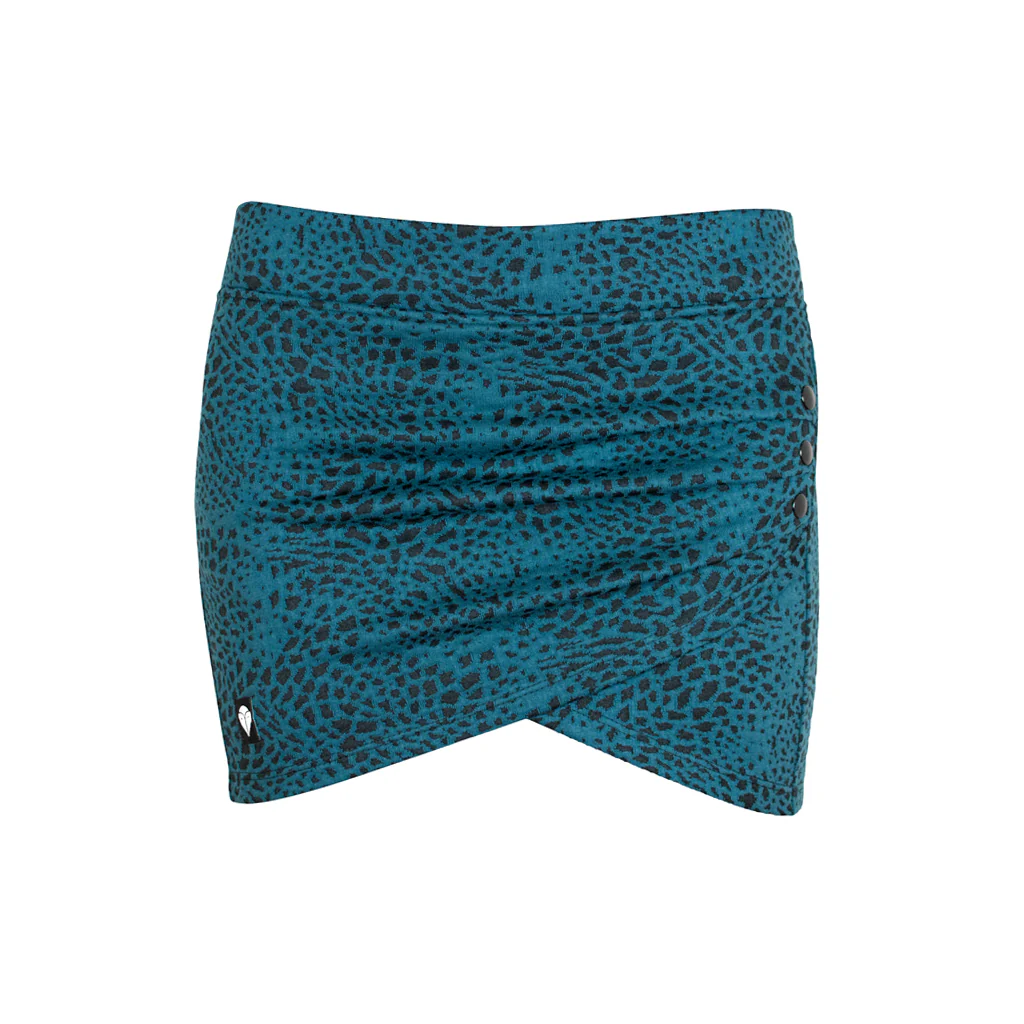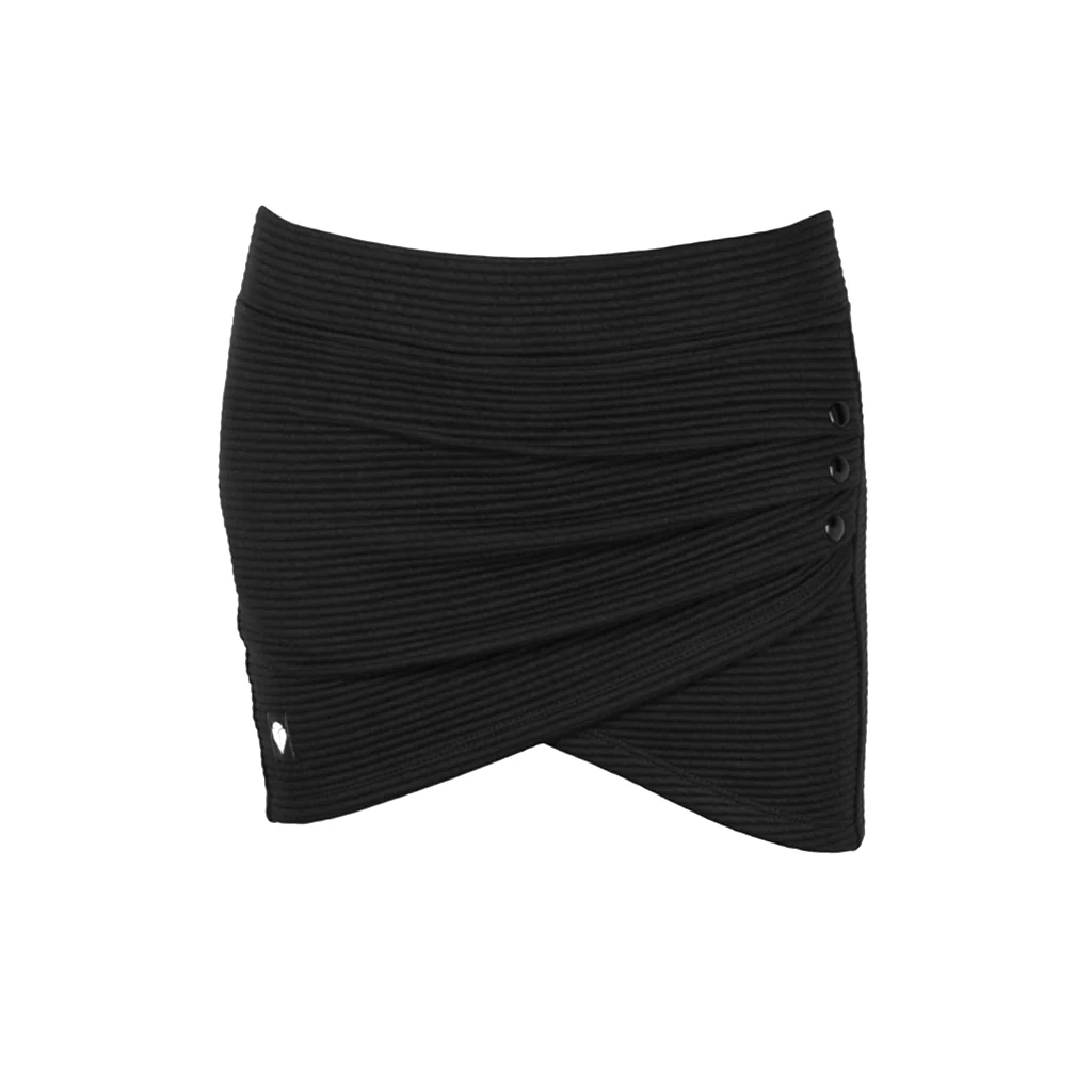 Faldilla asimètrica curta de cadera. Teixit elàstic i cintura amb goma.
